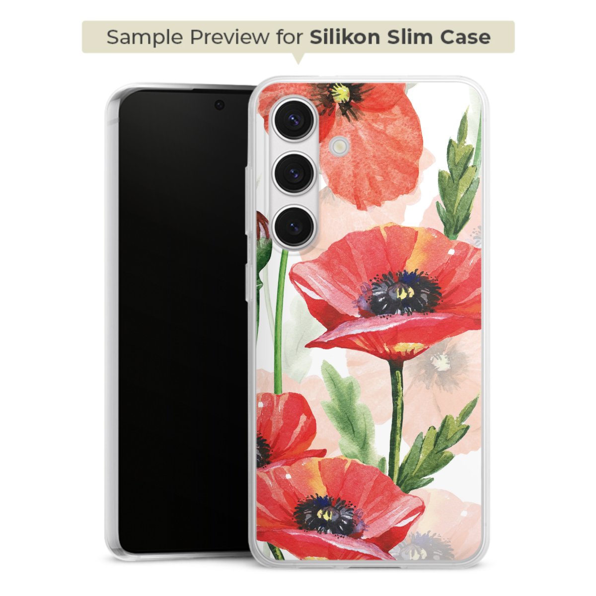 Printteknik För vårt Silikon Slim Case använder vi vår avancerade direkta printteknik. Baksidan är helt printbar, ramen är ej printbar. Du kan beställa telefonskalet utan print, helt eller delvis printat. Välj en av våra exklusiva, färdiga designer eller låt din kreativitet flöda och skapa din egen unika design med dina bilder, lager och text.