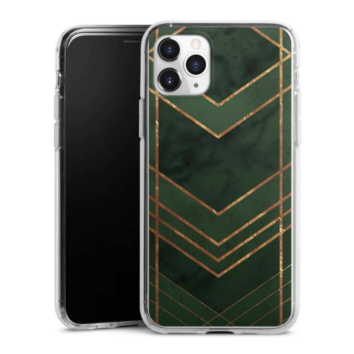 Dark Green Pattern Golden Stripes