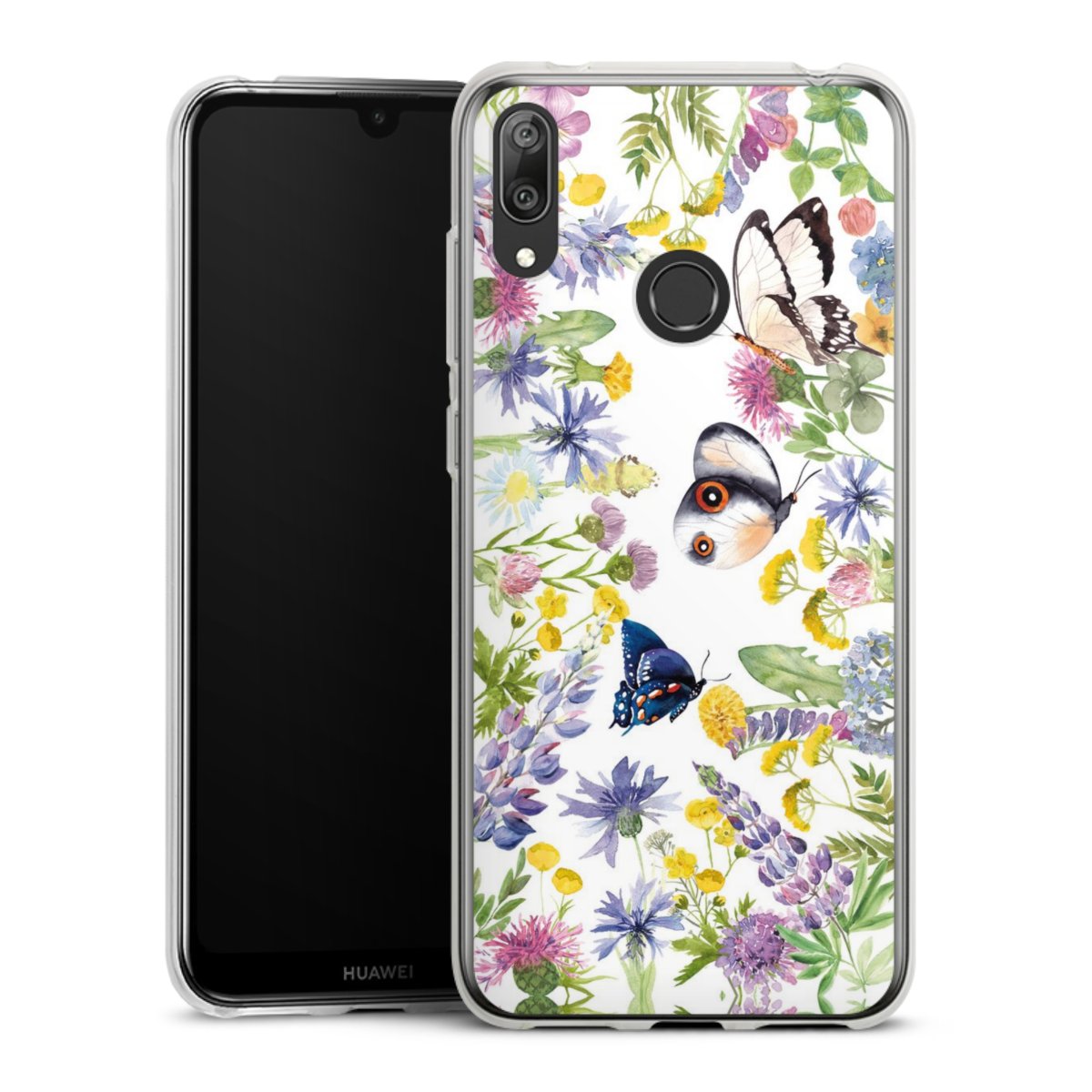 Bunte Frühlingsblumen und Schmetterlinge