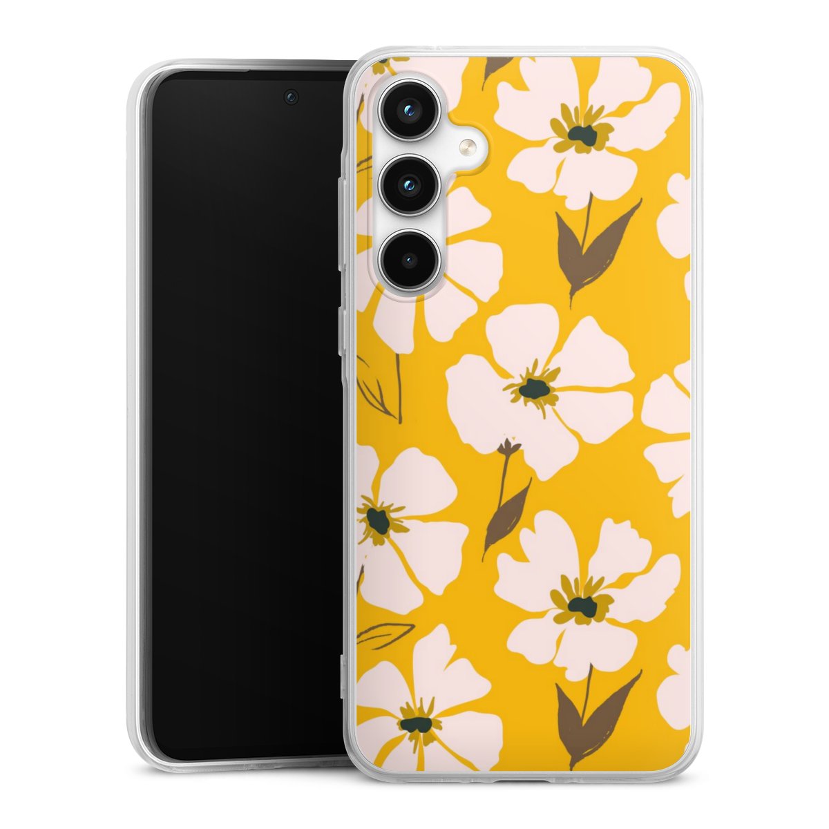 Flower meadow on yellow ocher