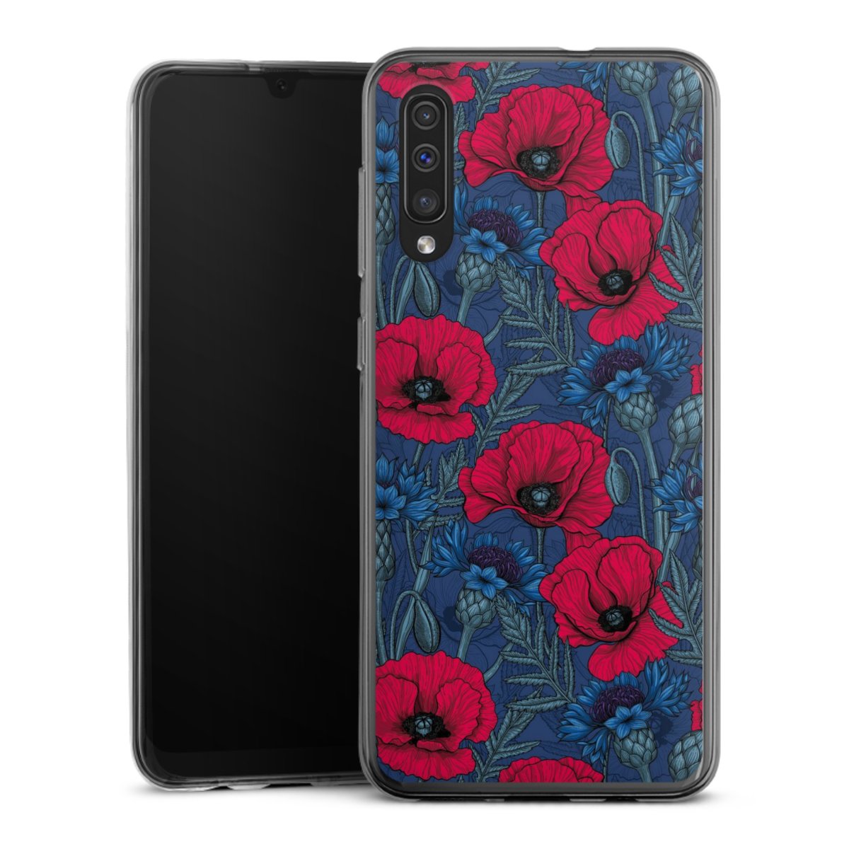 Poppies and Cornflowers on Blue