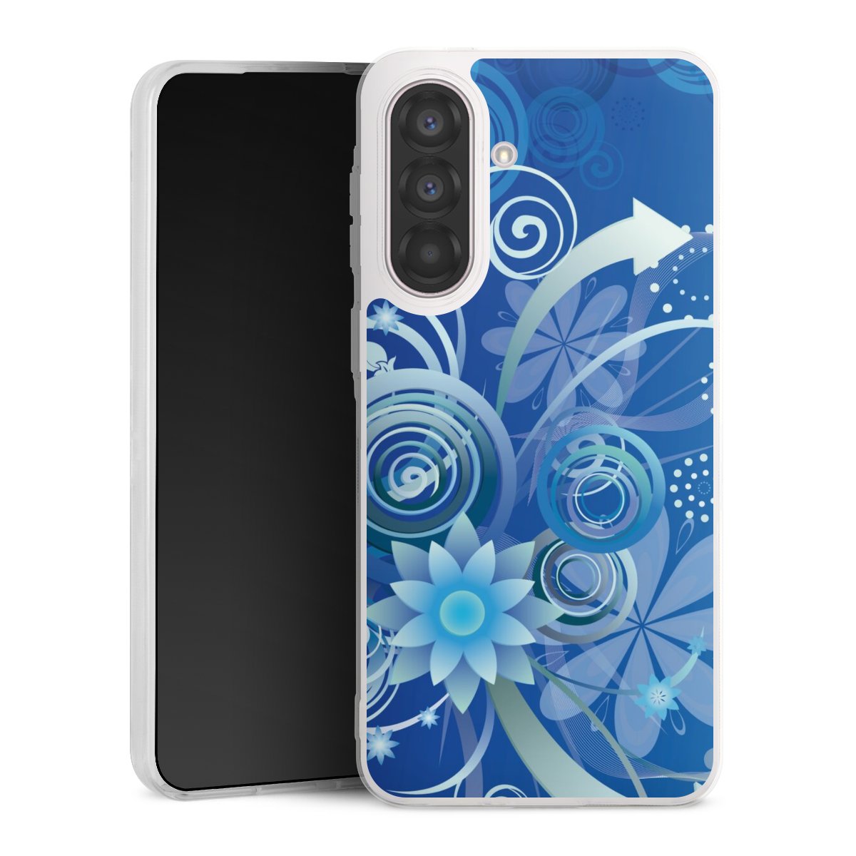 Flowers and Swirls Blue