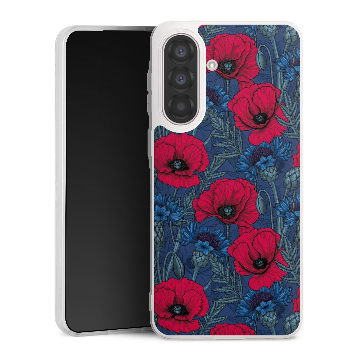 Poppies and Cornflowers on Blue