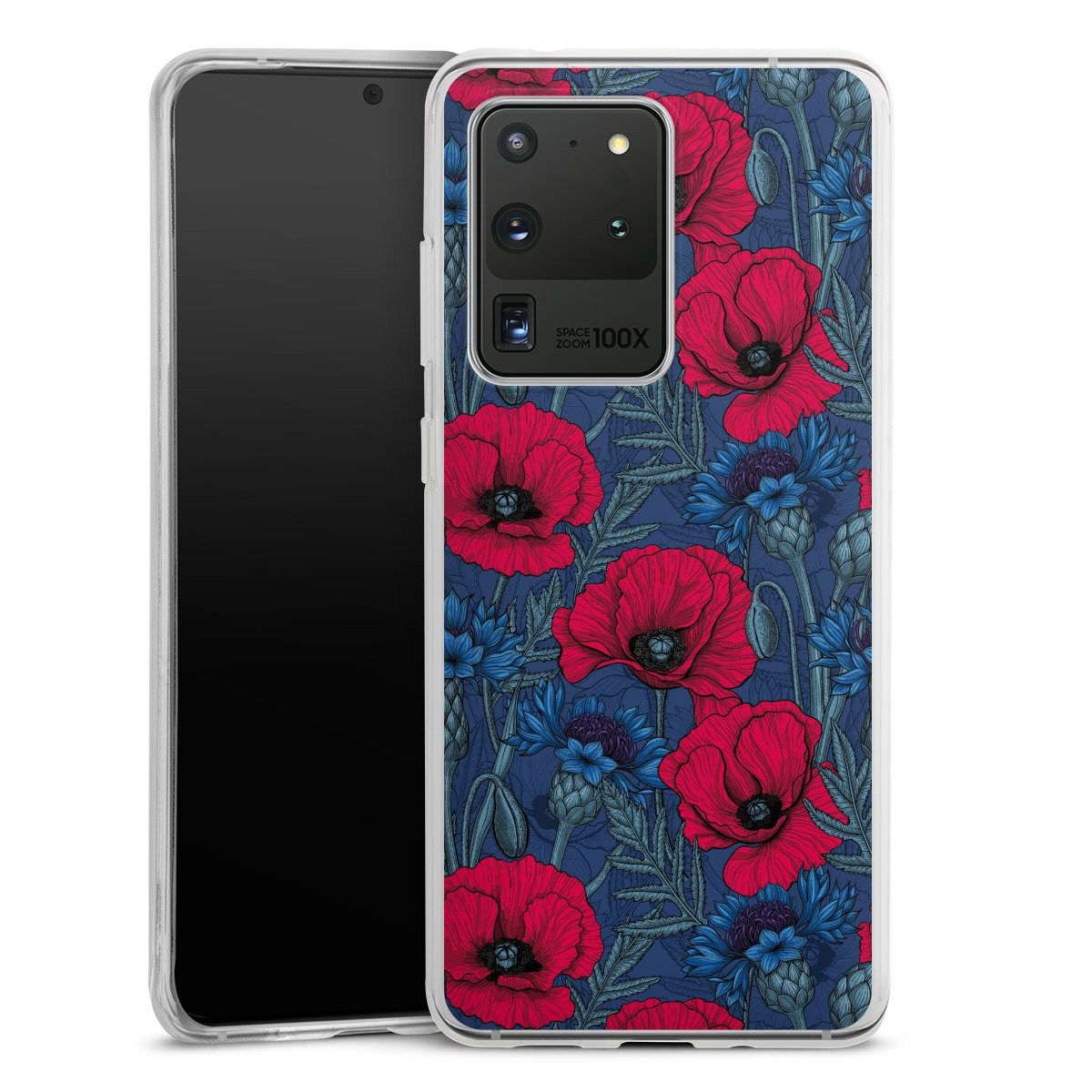 Poppies and Cornflowers on Blue