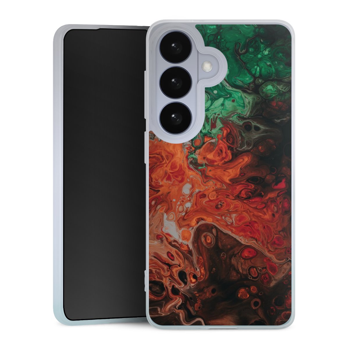 Printteknik För vårt Silikon Case använder vi vår avancerade direkta printteknik. Baksidan är helt printbar, ramen är ej printbar. Du kan beställa telefonskalet utan print, helt eller delvis printat. Välj en av våra exklusiva, färdiga designer eller låt din kreativitet flöda och skapa din egen unika design med dina bilder, lager och text.