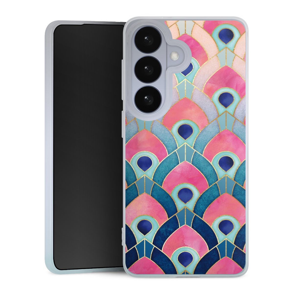 Printteknik För vårt Silikon Case använder vi vår avancerade direkta printteknik. Baksidan är helt printbar, ramen är ej printbar. Du kan beställa telefonskalet utan print, helt eller delvis printat. Välj en av våra exklusiva, färdiga designer eller låt din kreativitet flöda och skapa din egen unika design med dina bilder, lager och text.