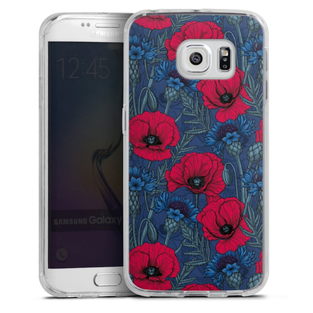 Poppies and Cornflowers on Blue