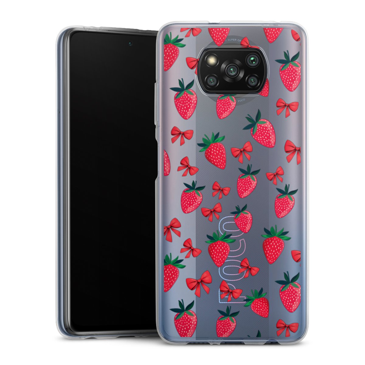 Strawberry Heart Ribbon Pattern Transparent
