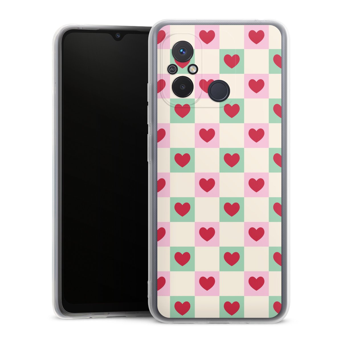 Valentine Checked Hearts Pattern Pink Green