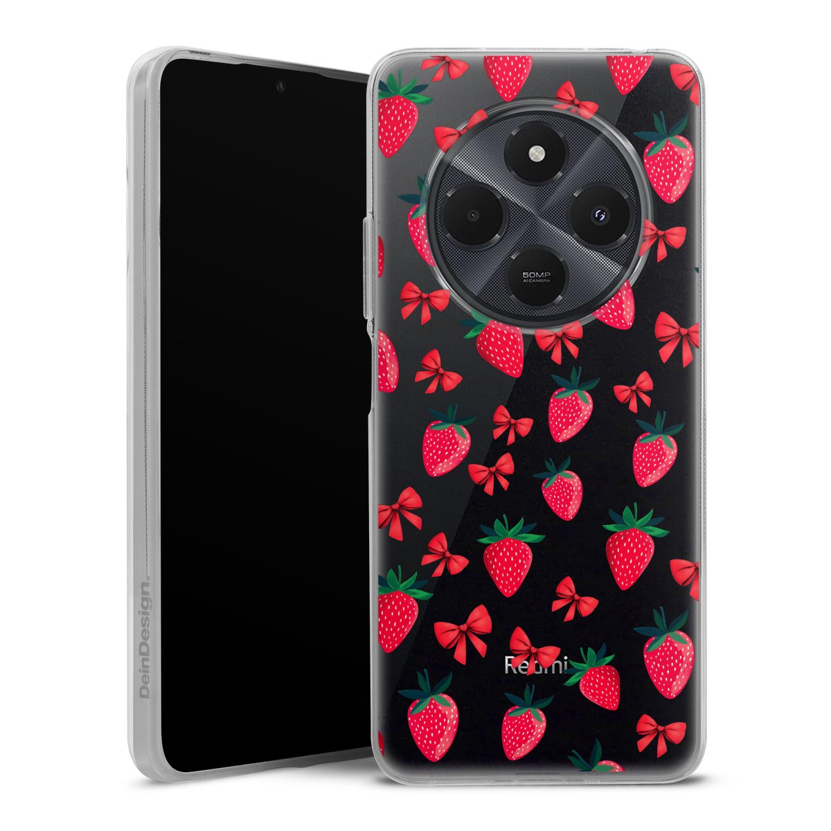 Strawberry Heart Ribbon Pattern Transparent