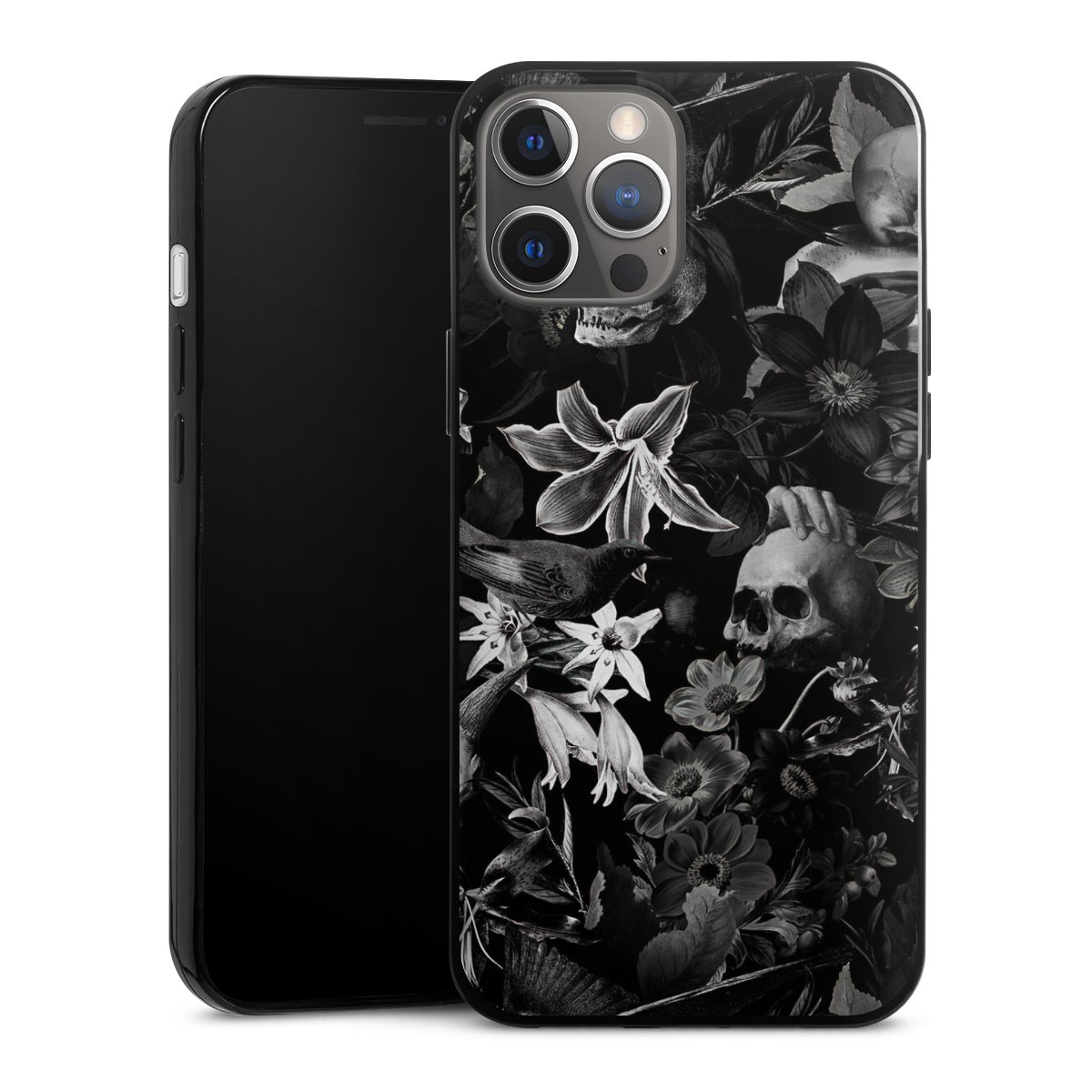 Skulls and Flowers on Black Background
