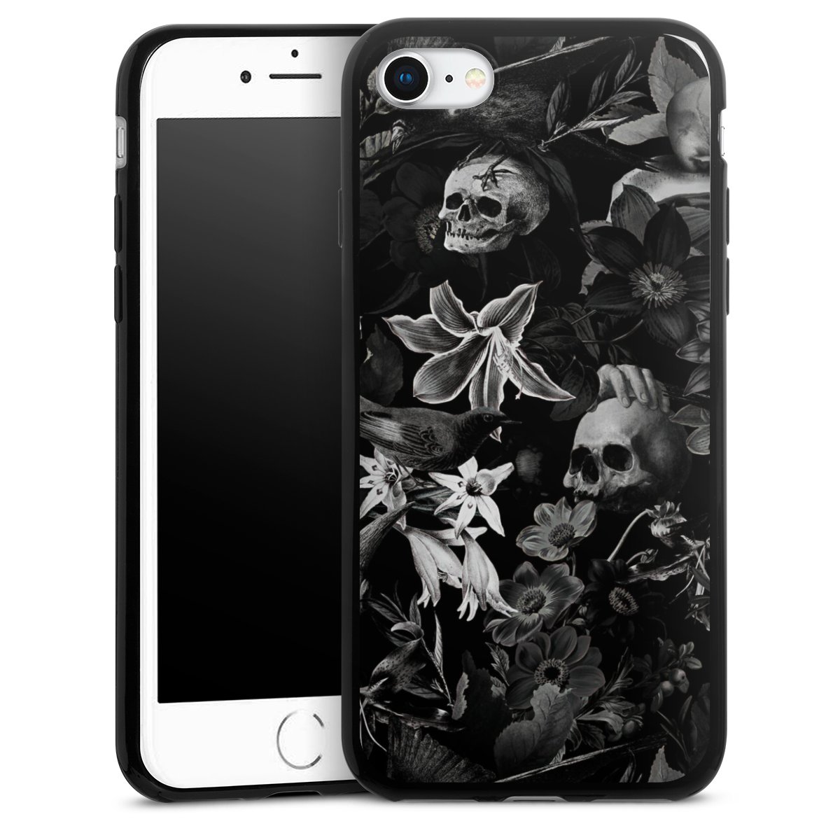 Skulls and Flowers on Black Background