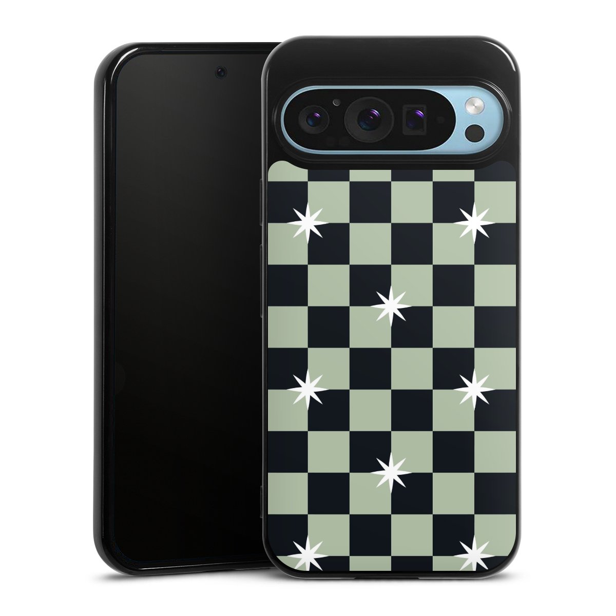 Checked Pattern Black Grey Stars