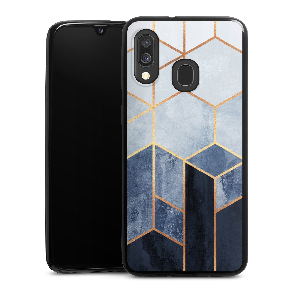 Soft Blue Hexagons Gold Print