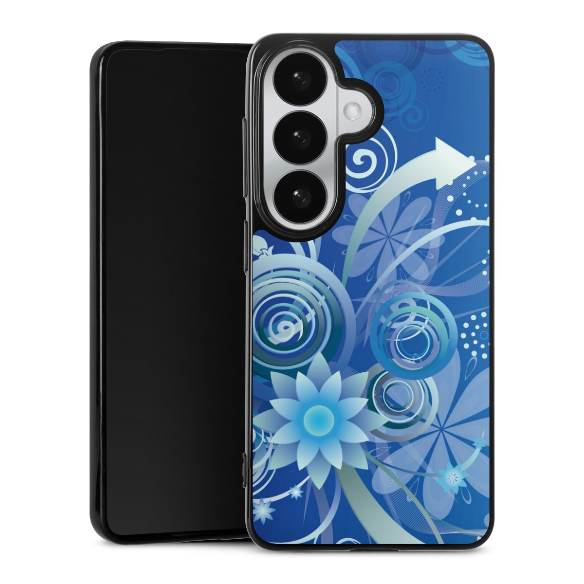 Flowers and Swirls Blue