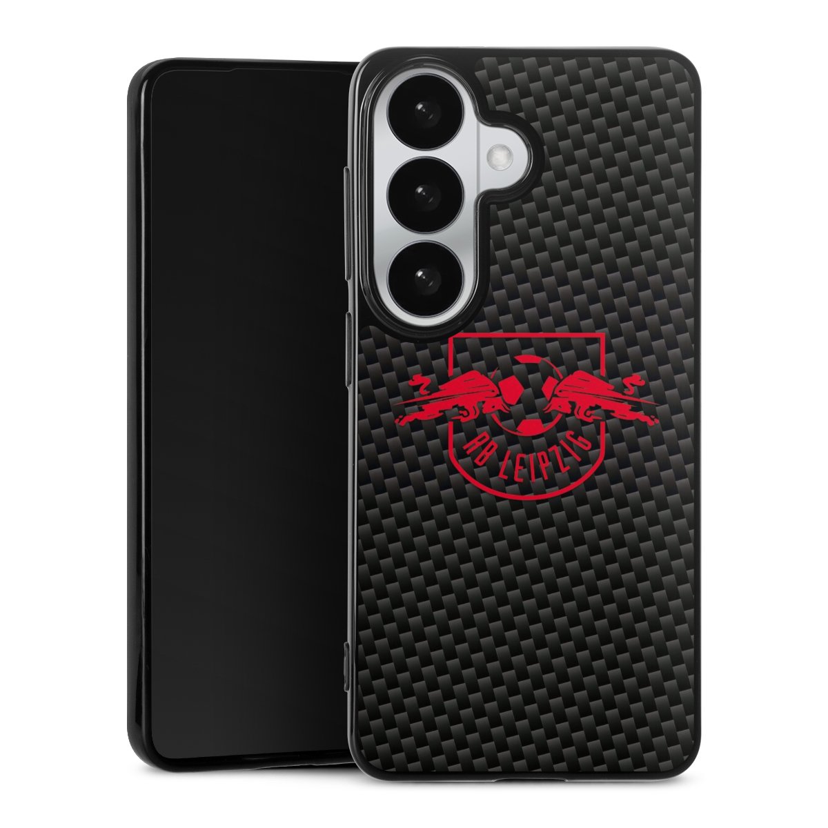 Rotes RB Leipzig Logo auf Carbonoptik
