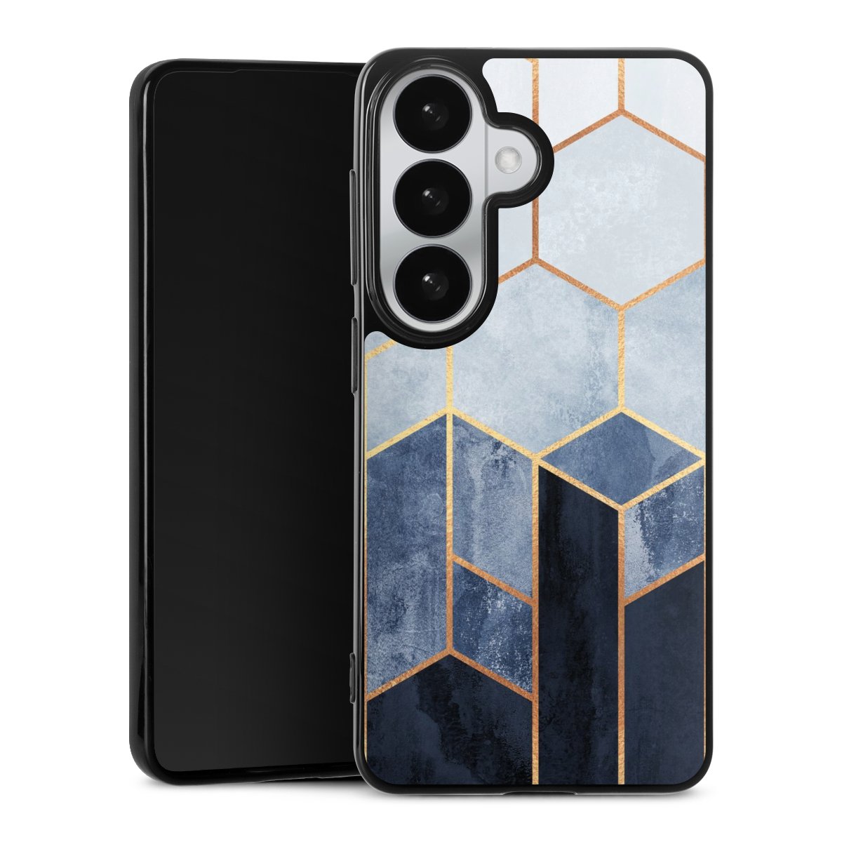 Soft Blue Hexagons Gold Print