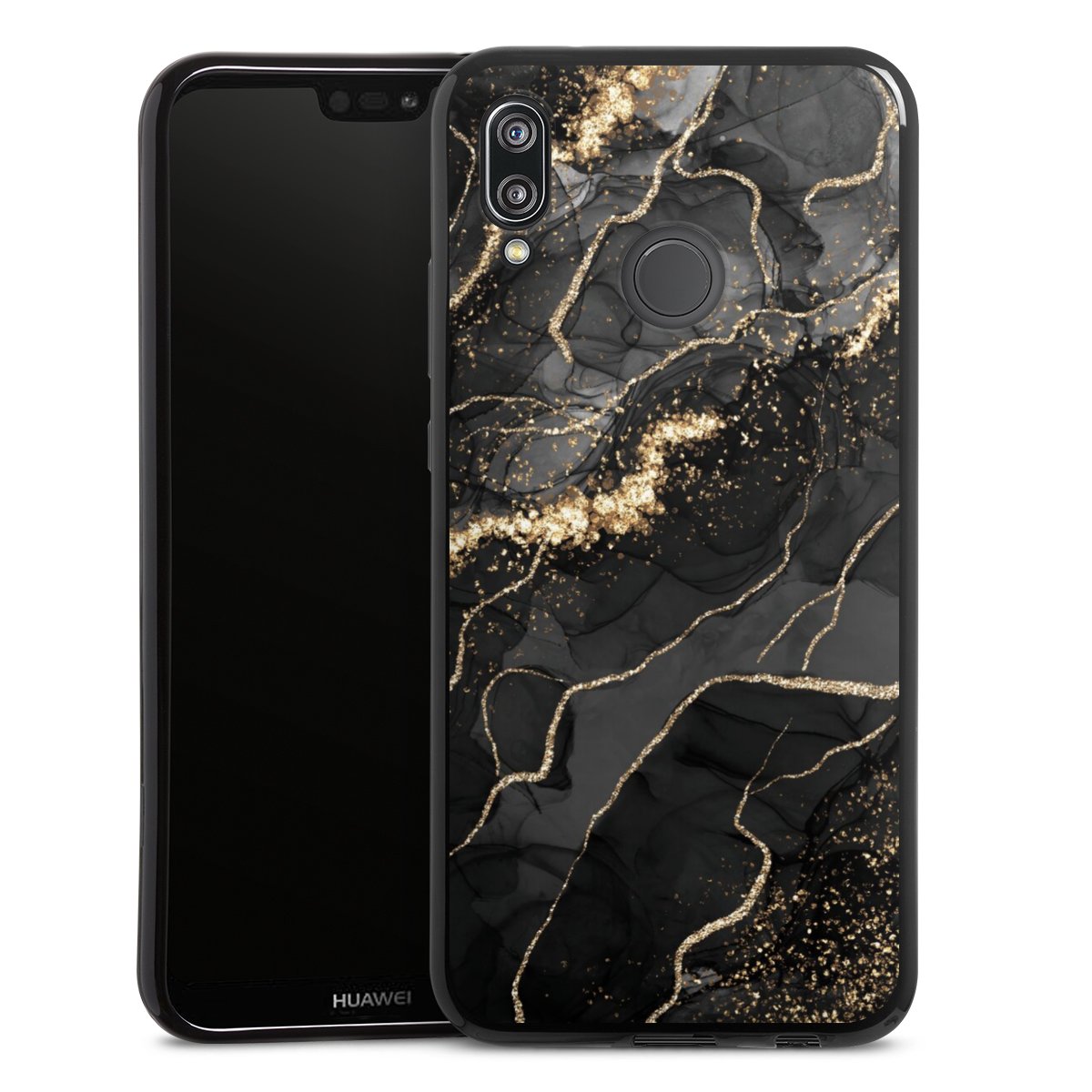 Dark Marble Swirls Gold Look