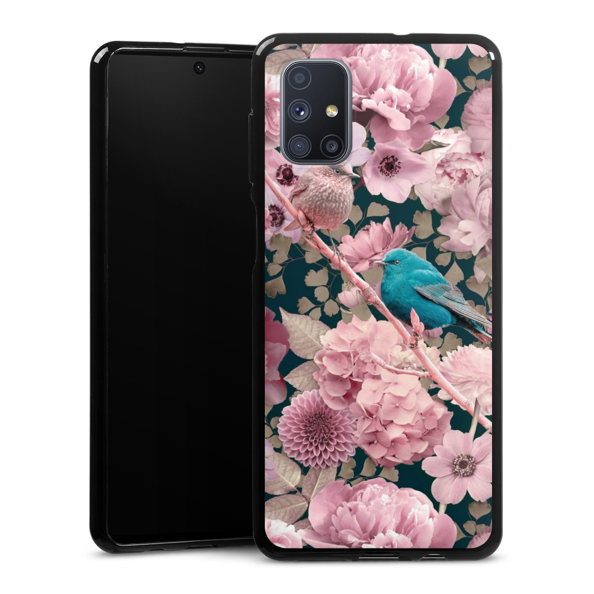 Sparrows in Pink Flower Pattern