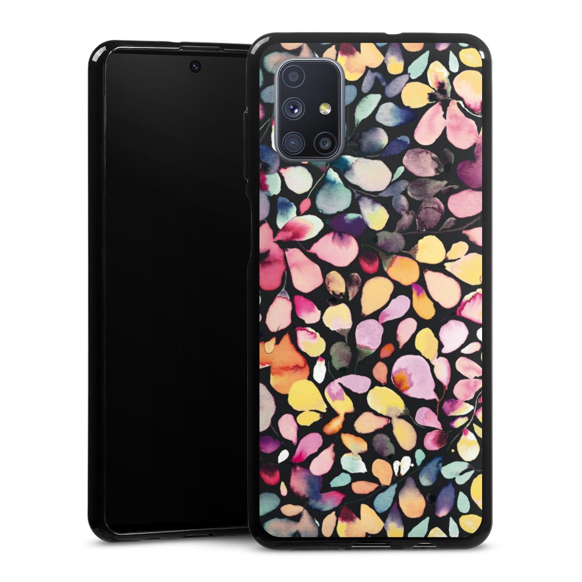 Watercolor Leaves Black
