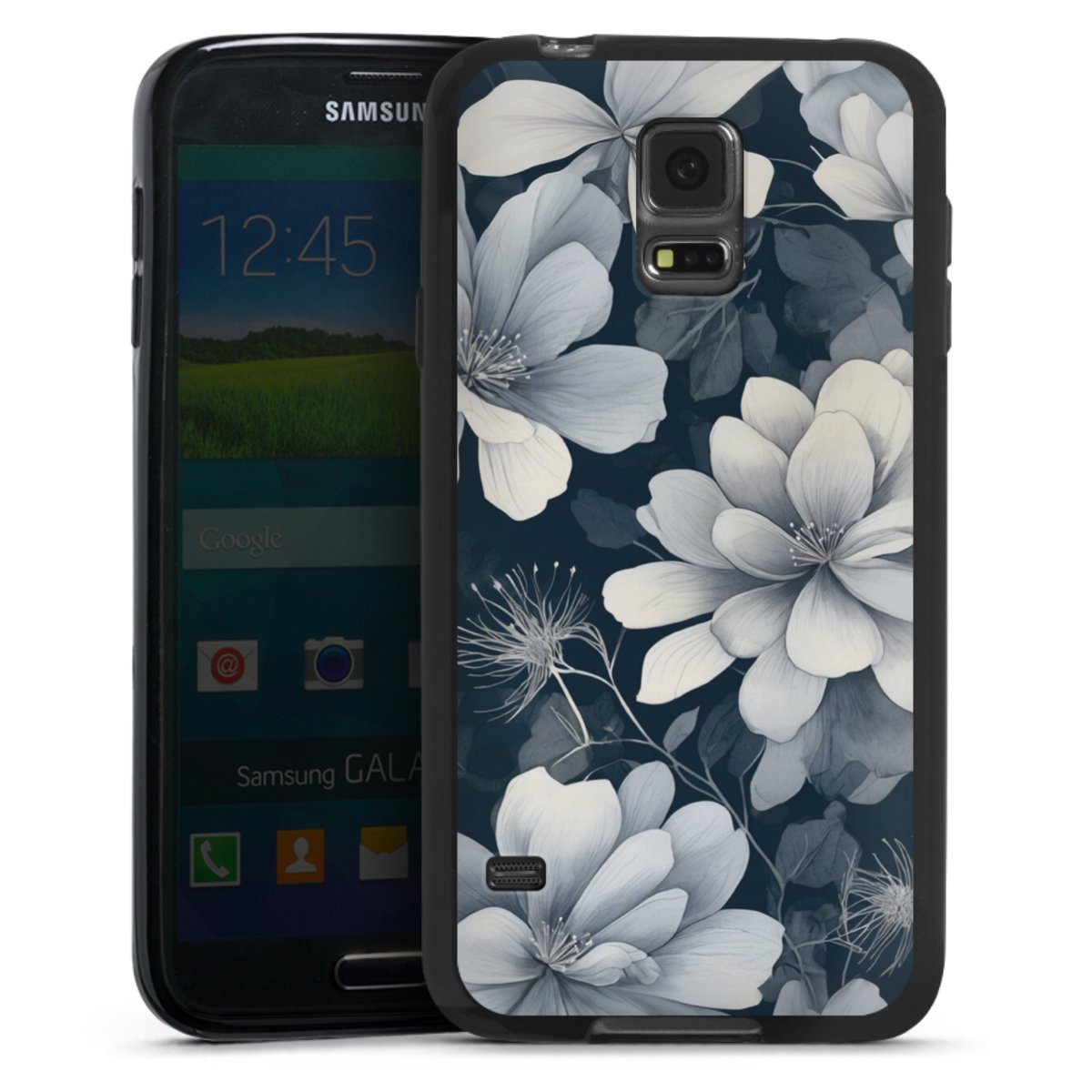 Negative Flower Blue White with AI