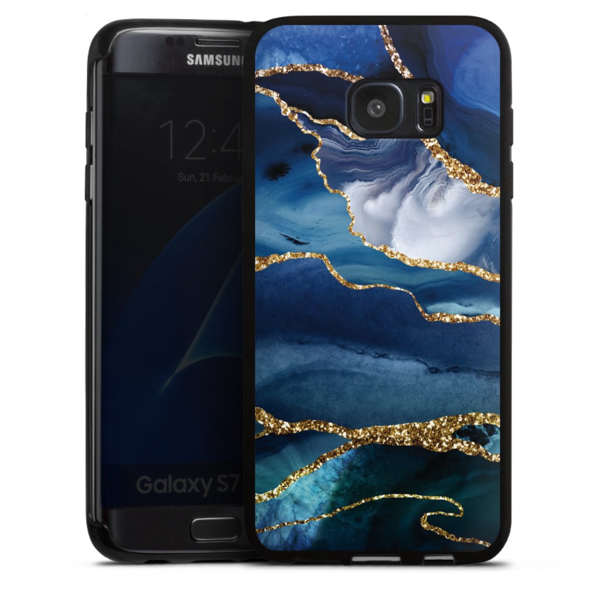 Blue Marble Gold Glitter Look
