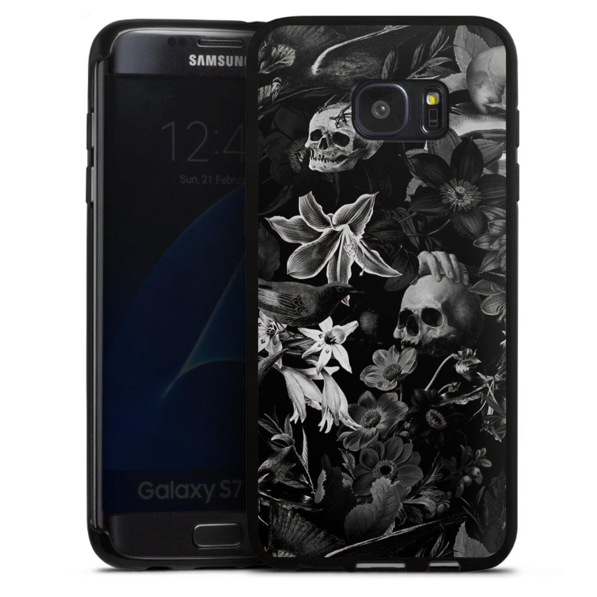 Skulls and Flowers on Black Background