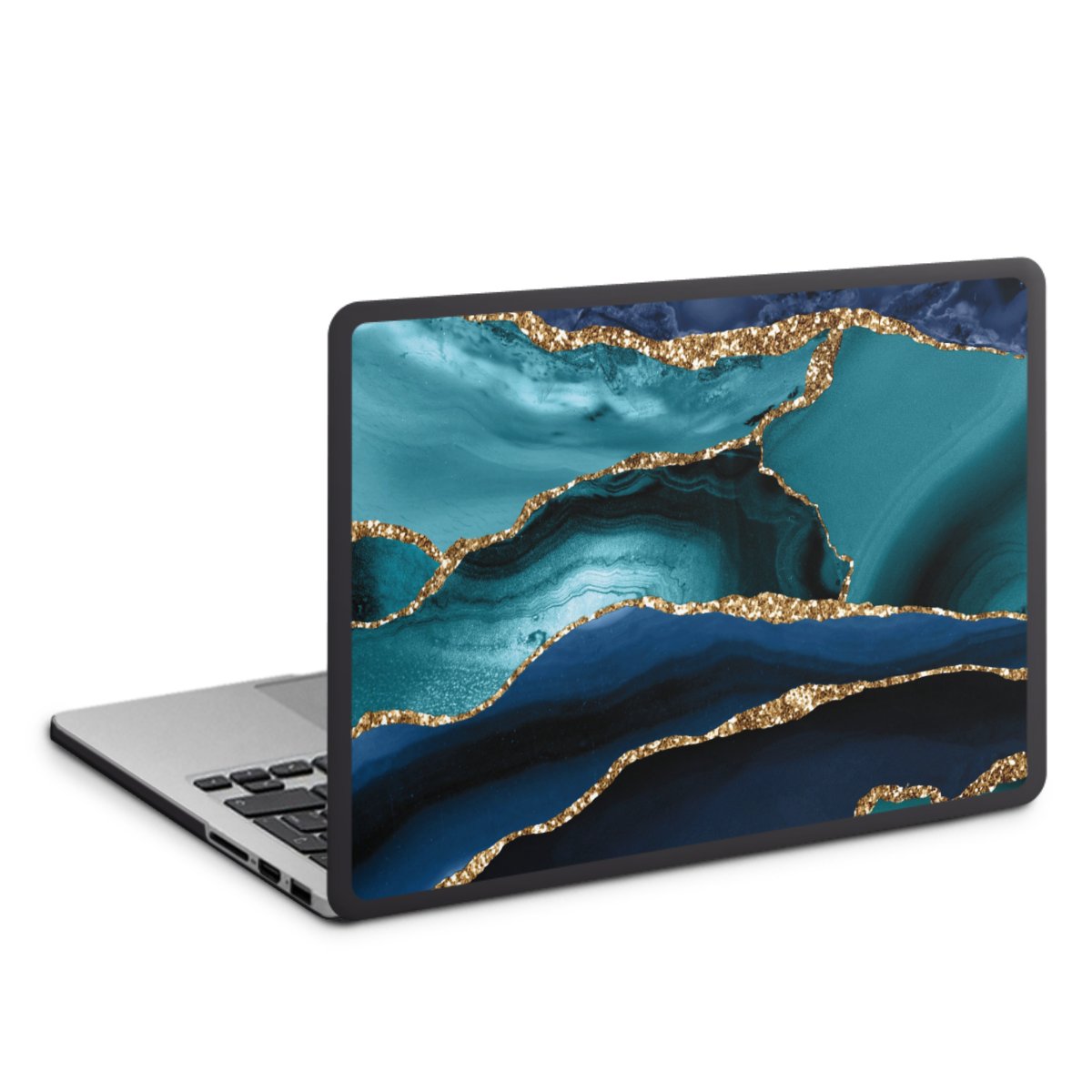 Dark and Light Blue Marble Gold Glitter Look
