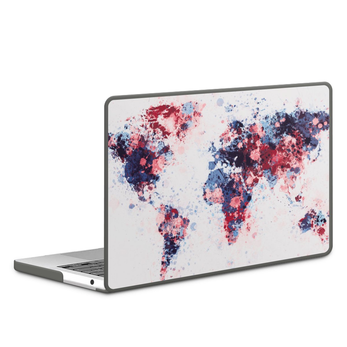 World Map Paint Splashes Blue Red