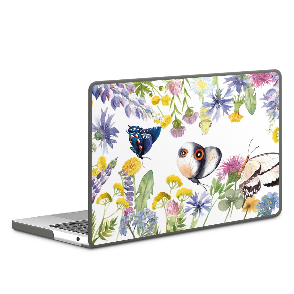 Bunte Frühlingsblumen und Schmetterlinge
