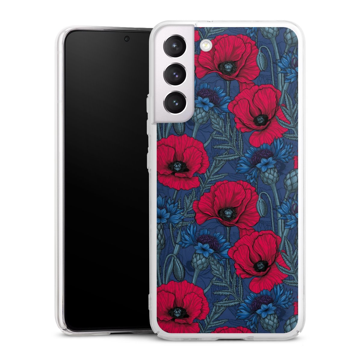 Poppies and Cornflowers on Blue