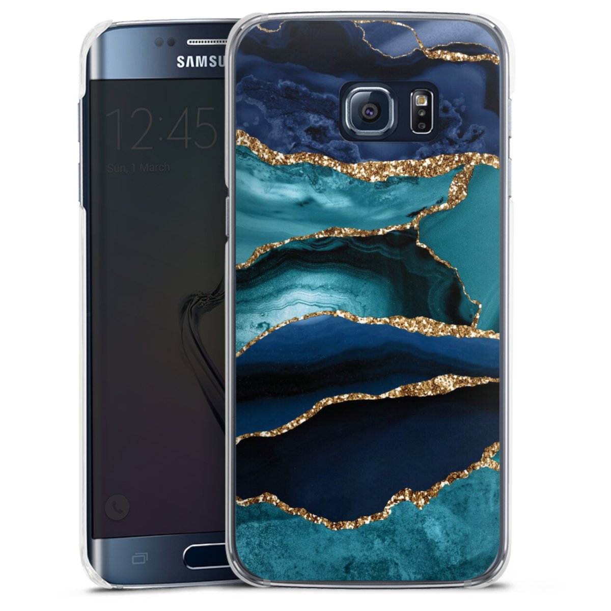 Dark and Light Blue Marble Gold Glitter Look