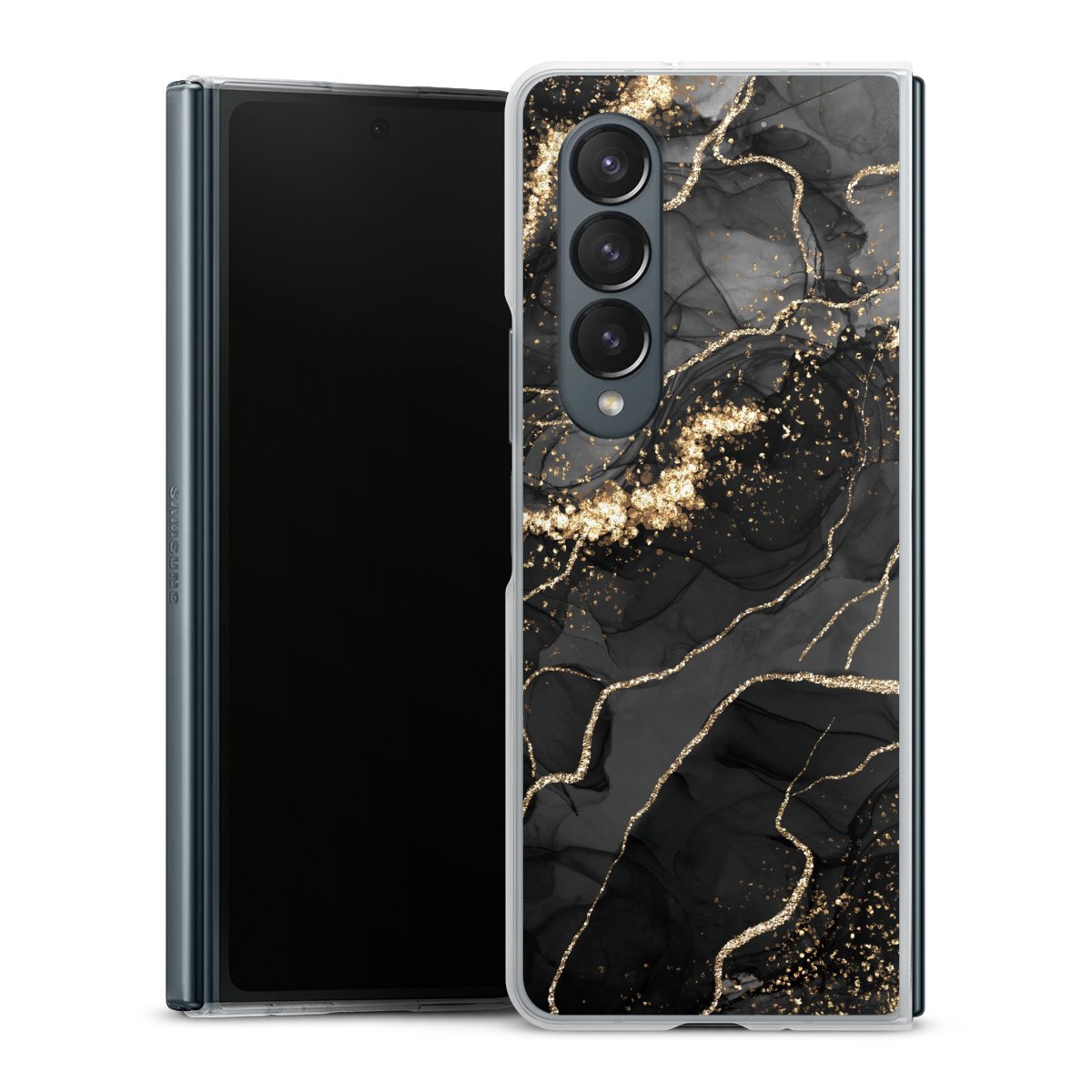 Dark Marble Swirls Gold Look