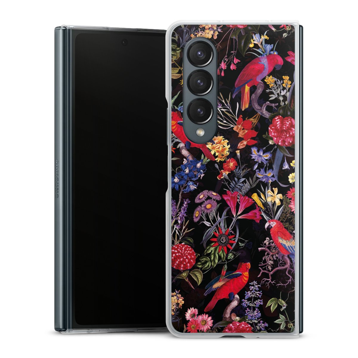 Dark Flowers and Parrots