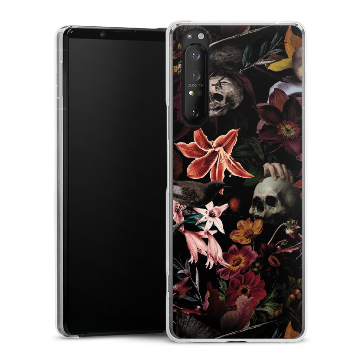Skulls and Flowers on Dark Background