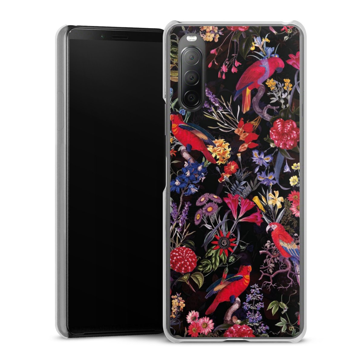 Dark Flowers and Parrots