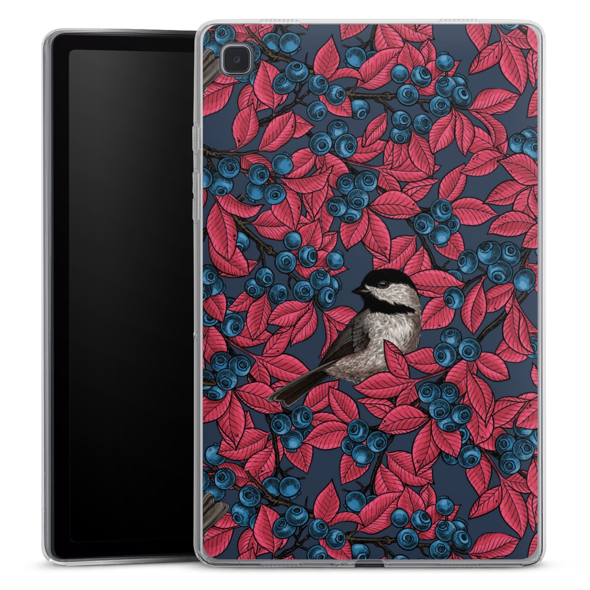 Blueberries And Birds On Navy
